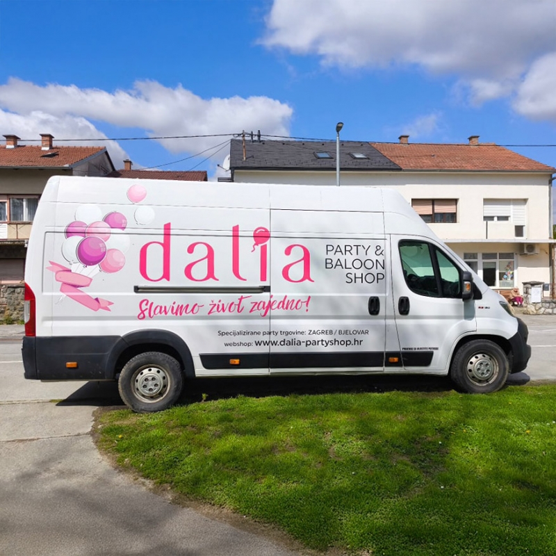 Još jedan zanimljiv projekt u našem portfoliju - oslikavanje kombija za Dalia Party & Baloon Shop u Bjelovaru!